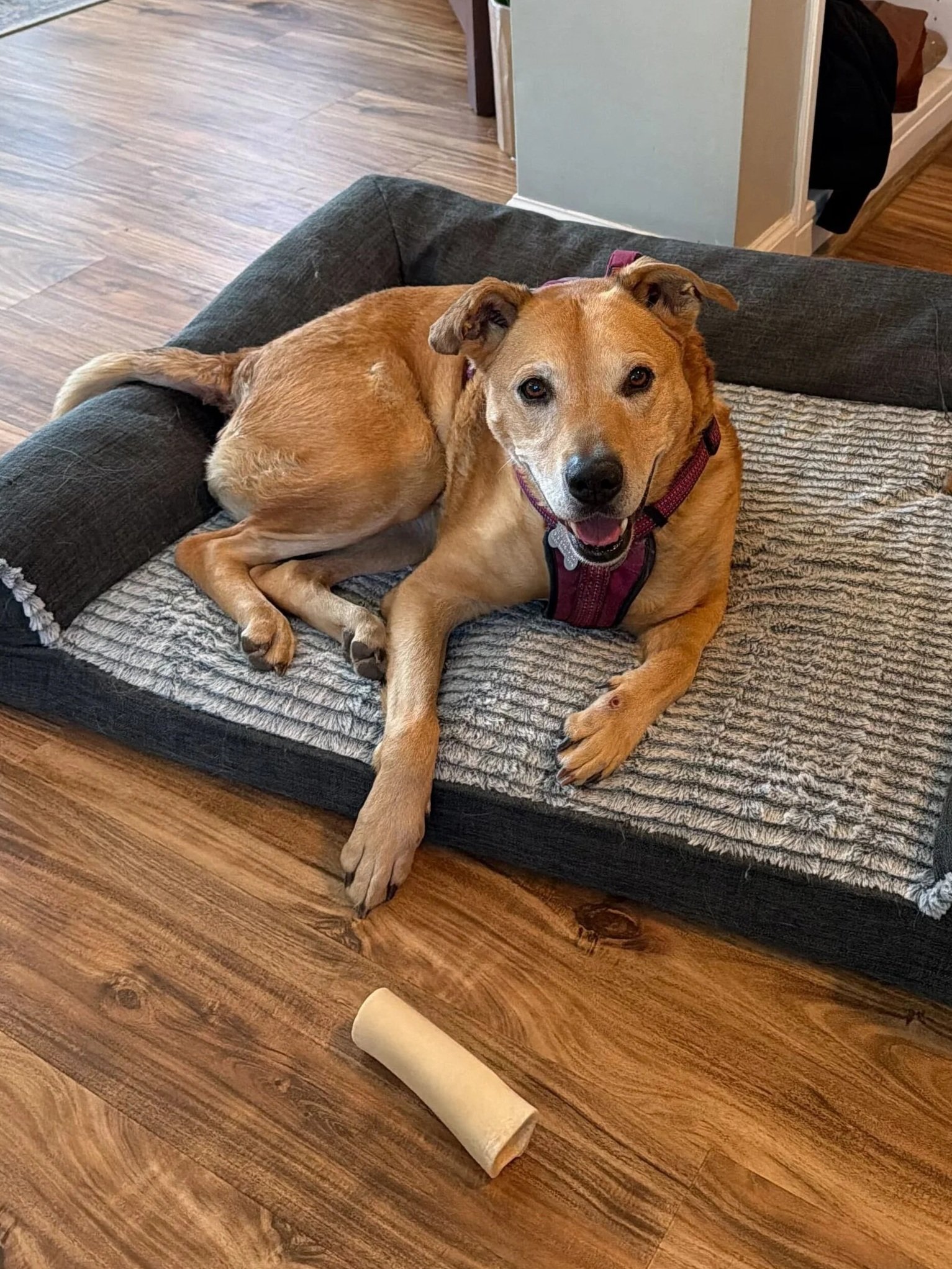 Owen is a one-of-a-kind hound mix (Bluetick Coonhound, German Shepherd, and Great Pyrenees) who has been waiting far too long for someone to see how special he really is. This boy is affectionate, smart, goofy in all the best ways, and absolutely lights up when he’s with his people or out exploring the world.