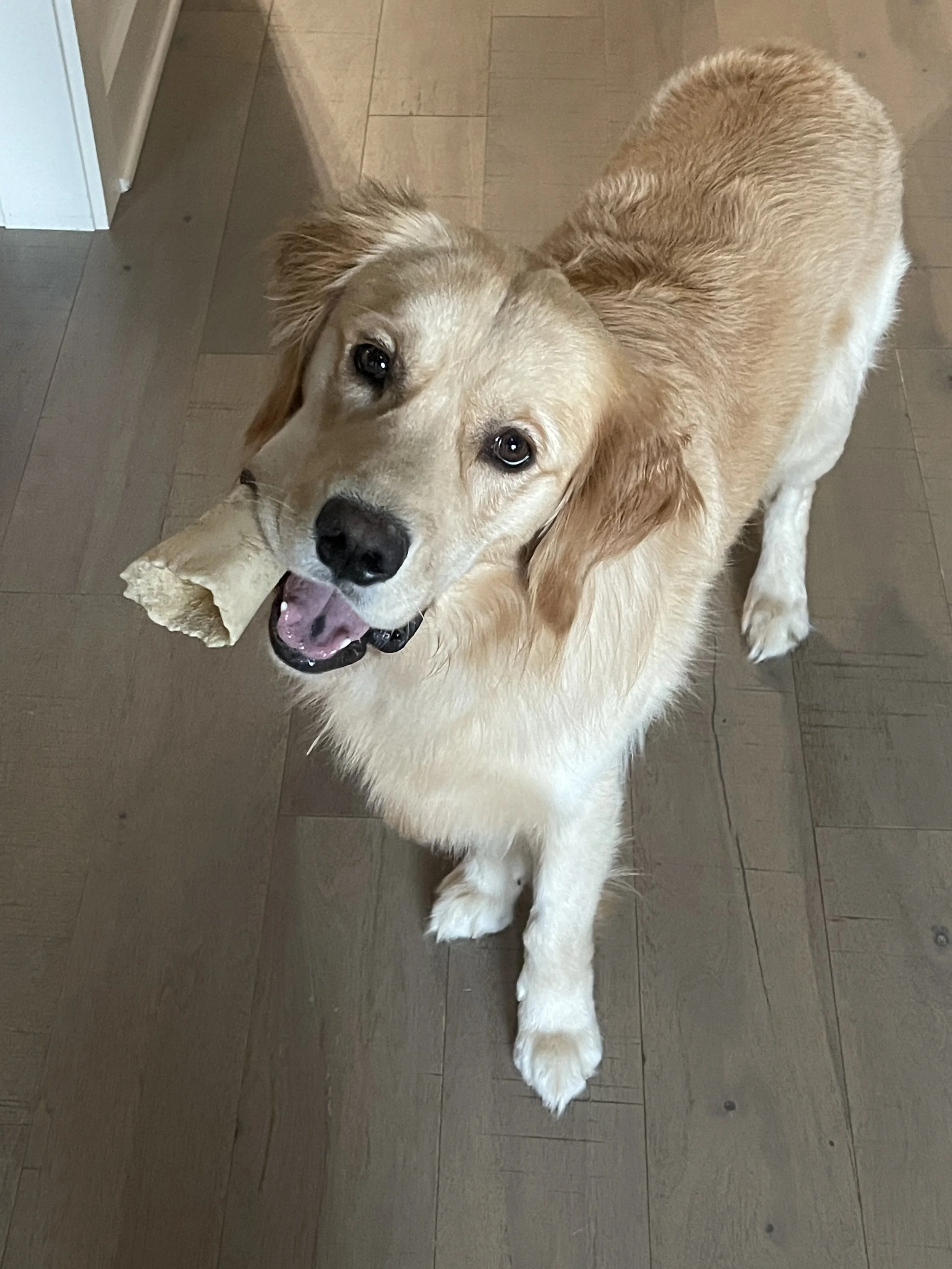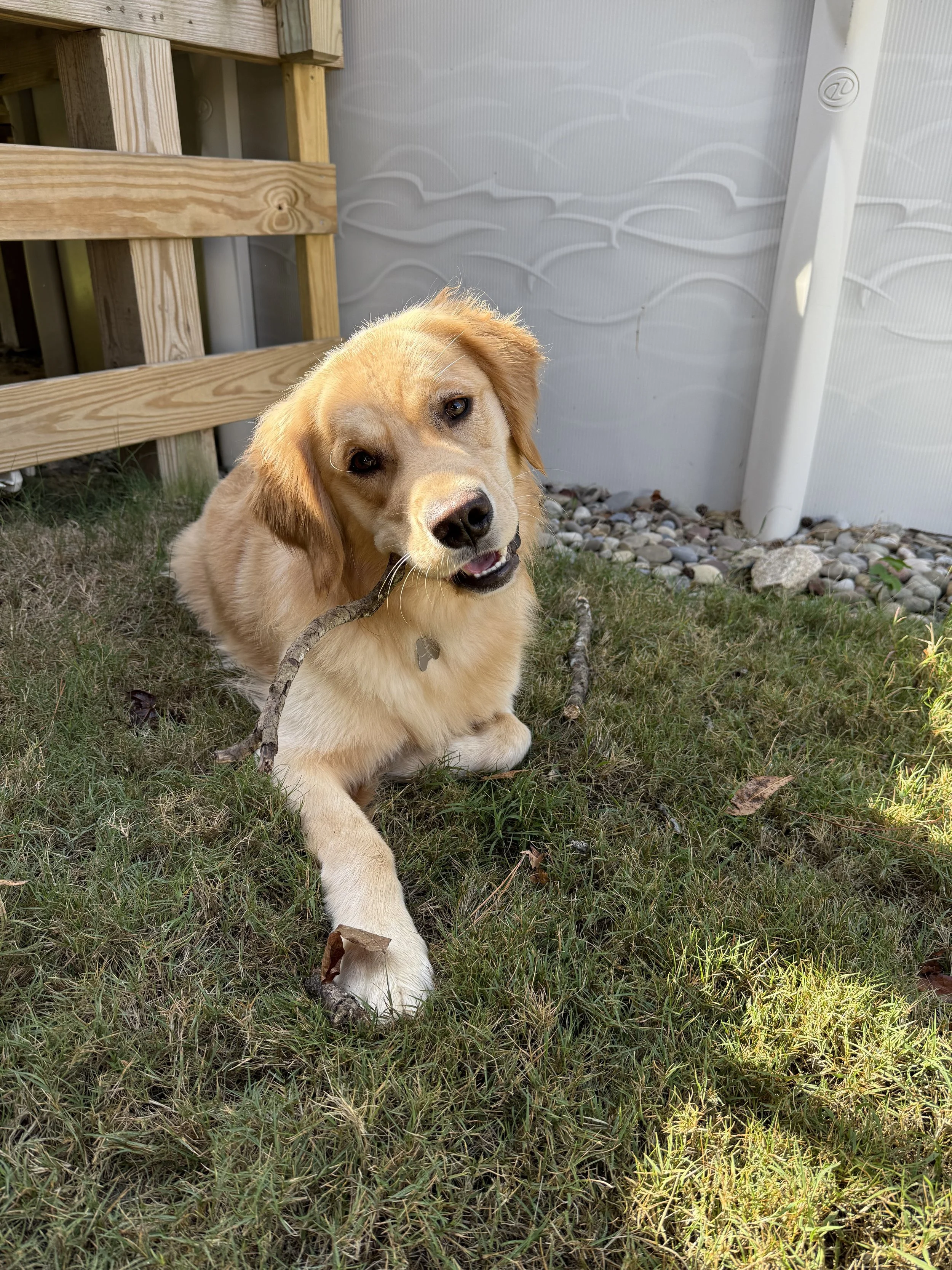 Jarvy is a lovable 1-year-old Golden Retriever with a heart as big as his energy! This playful pup is happiest when he’s turning sticks into woodchips, chewing on bones, or romping around with his doggy friend. He’s fully potty trained and has great house manners—he can even be trusted outside of his crate while you’re away (as long as there’s nothing too tempting left out!).