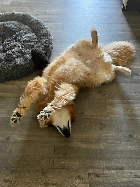 As we got to know Walter, we learned he loved apples, mango slices, popcorn and carbs of any type and we did our best to spoil him, in moderation, most of the time. Anyone who had the pleasure of meeting Walter got to see how much he was loved by our family, and how much he loved in return. Walter loved getting affection and would use his very loud and deep barks to get your attention if he felt his needs were not met. Head scratches & back and chest rubs were always welcomed, but ear scratches were among his favorite things in life and if you found just the right spot, he would let out a very loud grumble signaling his satisfaction. The best of all would come to be know as “Walter Bellies,” where he would roll onto his back and have all four paws in the air waiting for someone to rub his belly. We quickly instituted a house rule that you never pass up a Walter Belly.